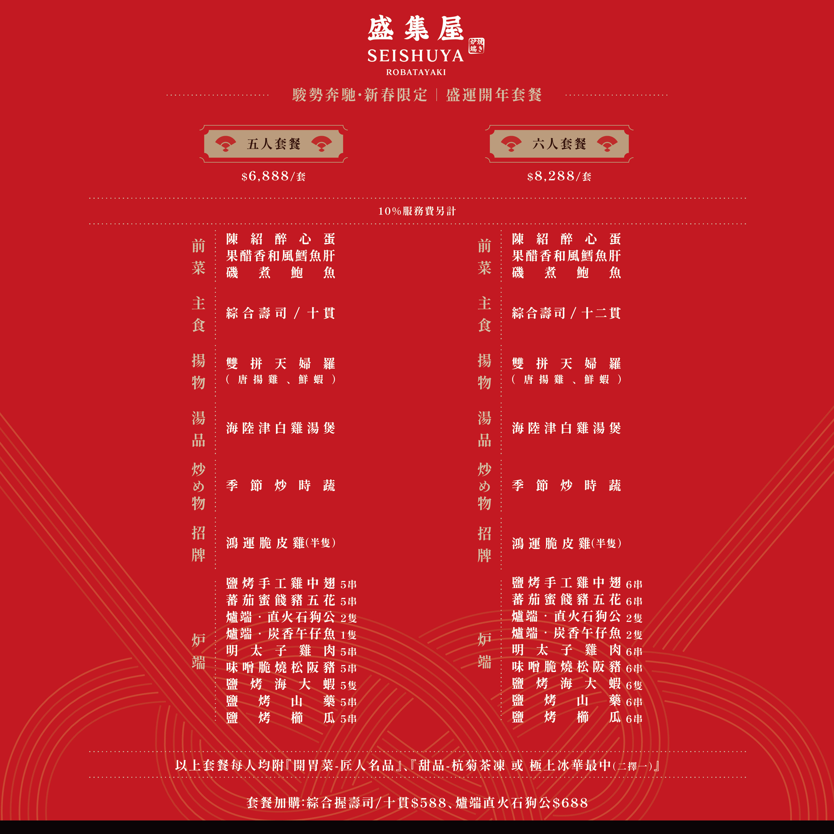 ・為維護出餐品質,春節期間僅提供「盛運開年套餐」
